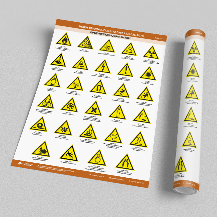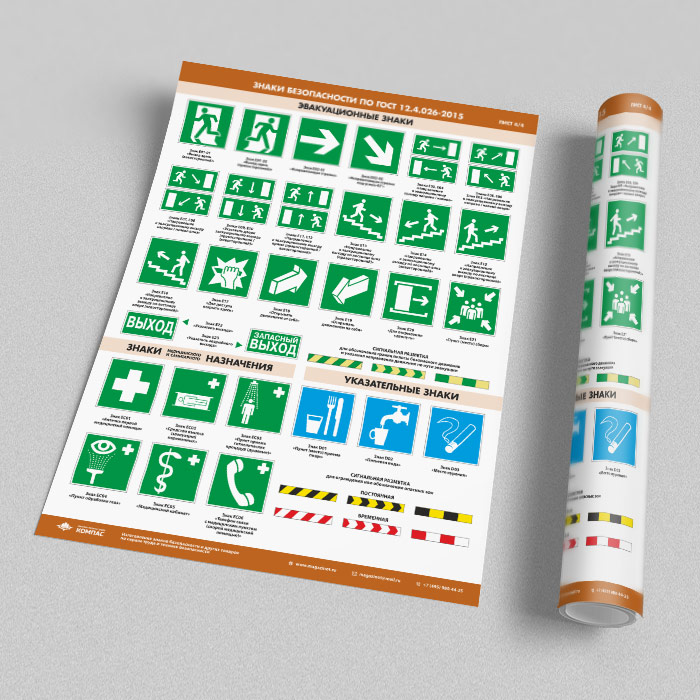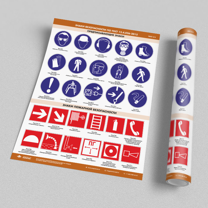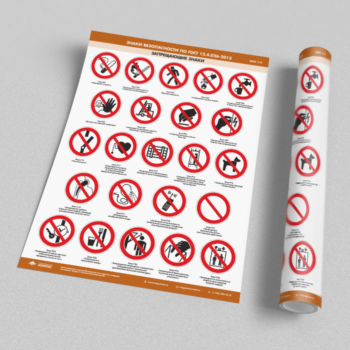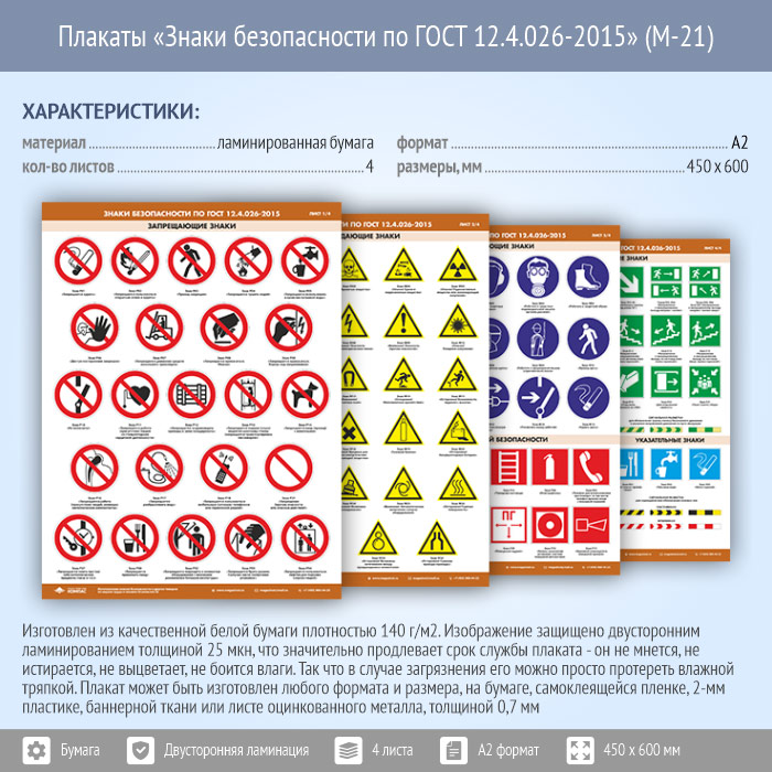 Плакаты «Знаки безопасности по ГОСТ 12.4.026-2015» (М-21, ламинированная бумага, А2, 4 листа) в Бердске купить