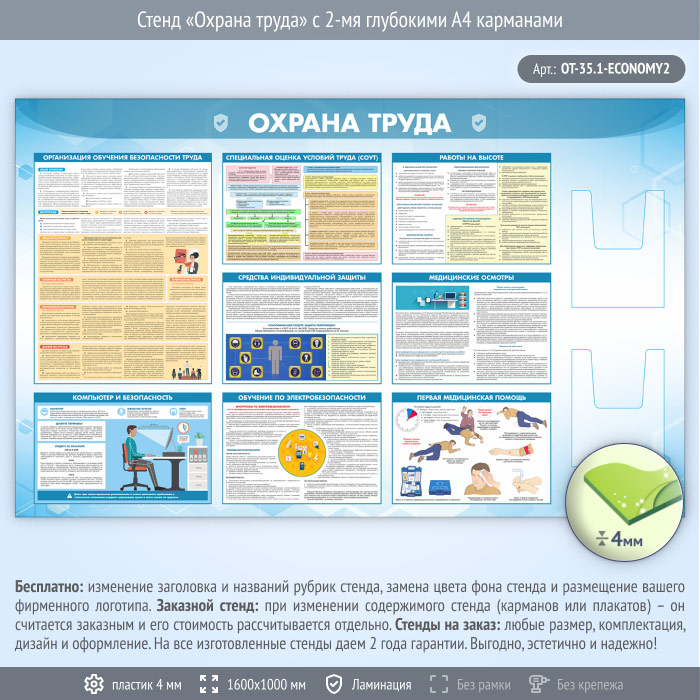 Стенд «Охрана труда» с 2-мя глубокими А4 карманами (OT-35.1-ECONOMY2) в Бердске купить