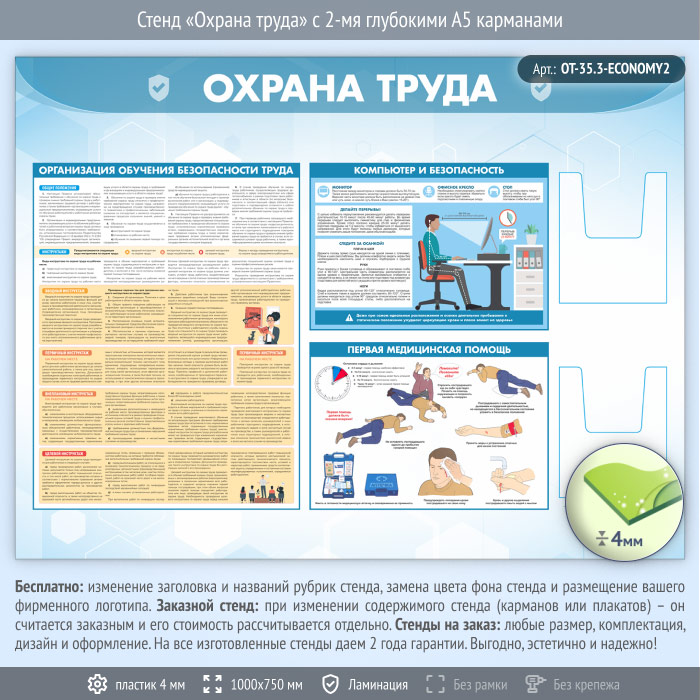 Стенд «Охрана труда» с 2-мя глубокими А5 карманами (OT-35.3-ECONOMY2) в Бердске купить