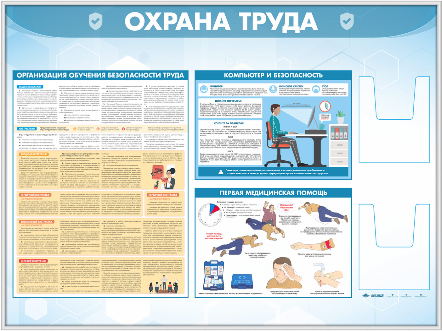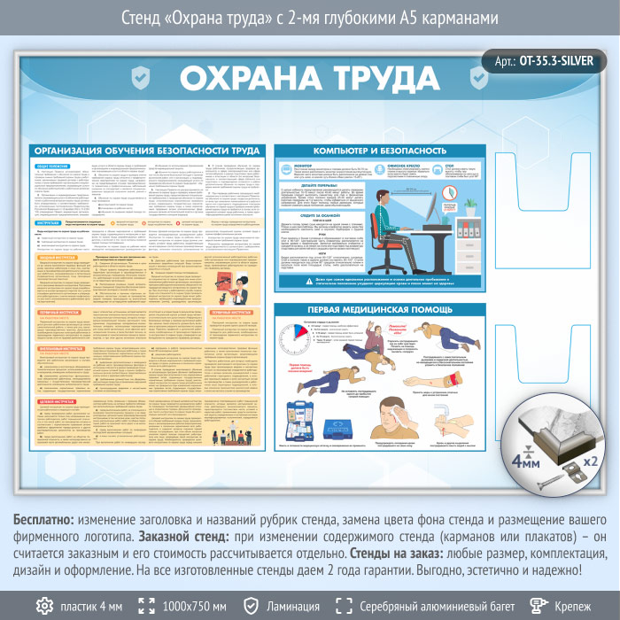 Стенд «Охрана труда» с 2-мя глубокими А5 карманами (OT-35.3-SILVER) в Бердске купить