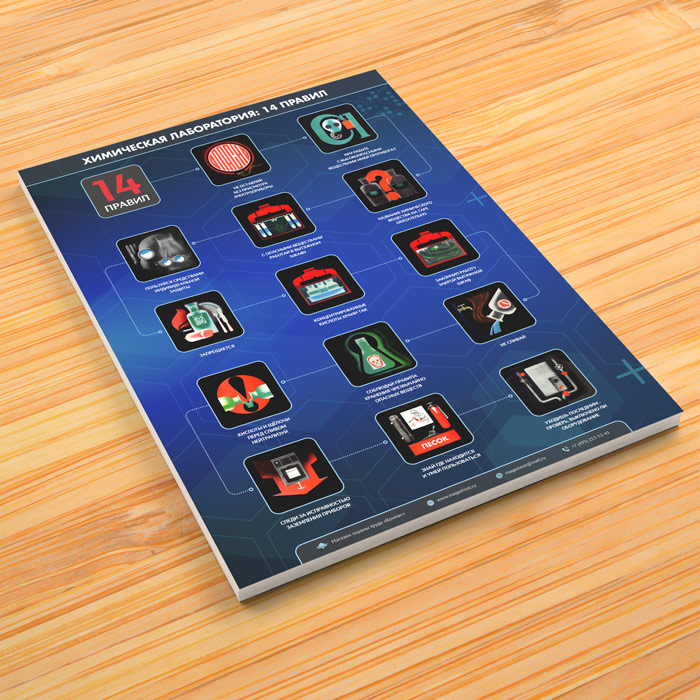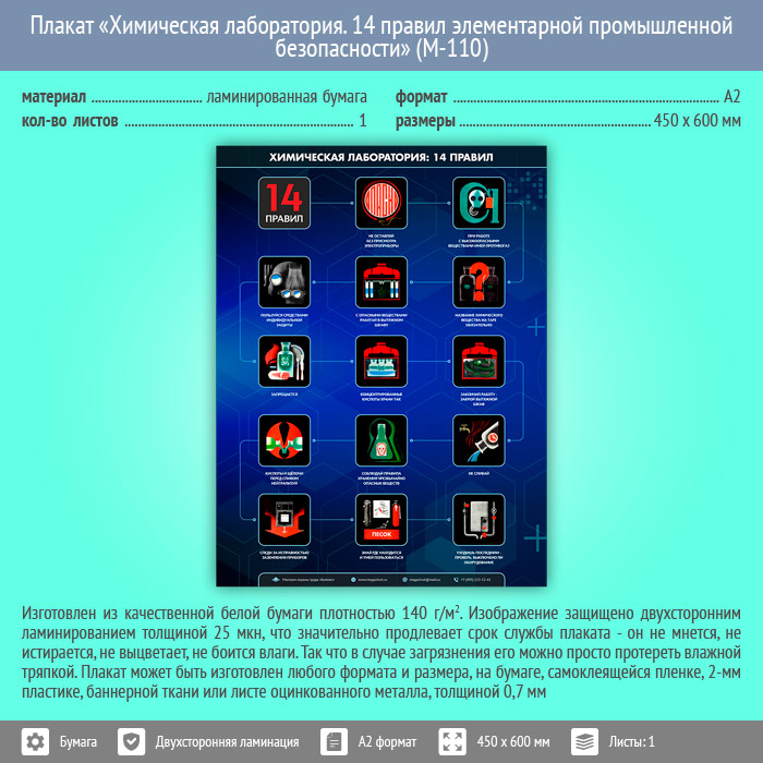 Плакат «Химическая лаборатория. 14 правил элементарной промышленной безопасности» (М-110, ламинированная бумага, А2, 1 лист) в Бердске купить
