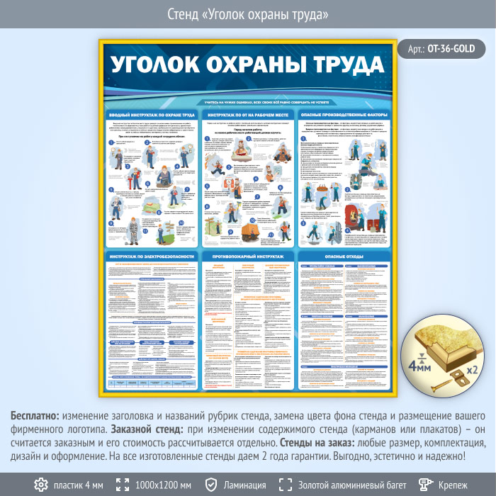 Стенд «Уголок охраны труда» (OT-36-GOLD) в Бердске купить