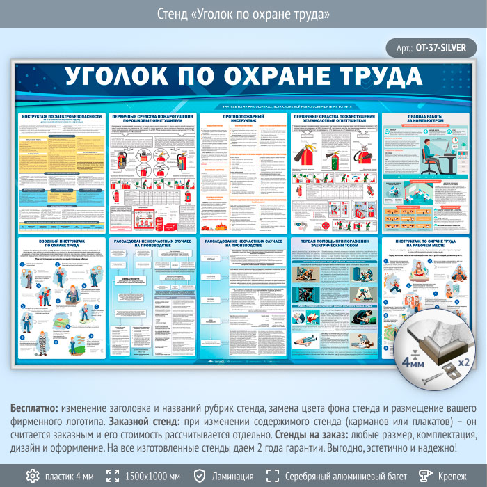 Стенд «Уголок по охране труда» (OT-37-SILVER) в Бердске купить