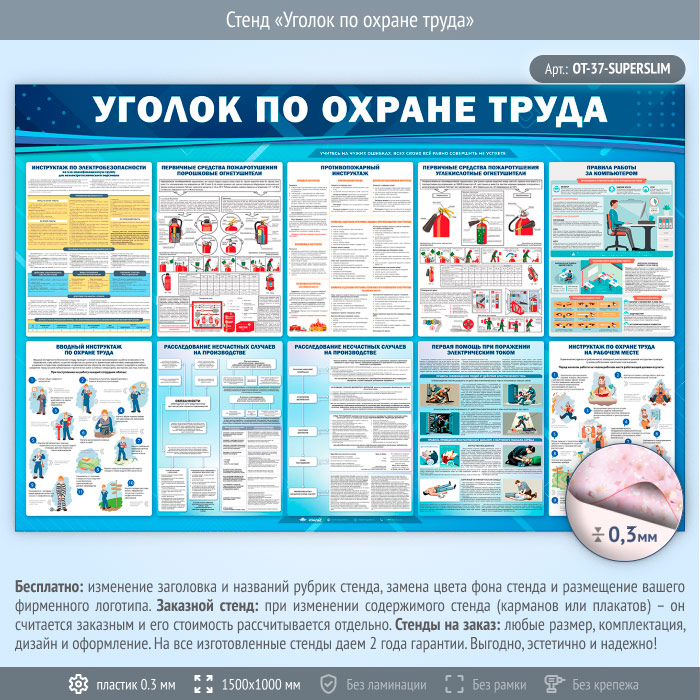 Стенд «Уголок по охране труда» (OT-37-SUPERSLIM) в Бердске купить