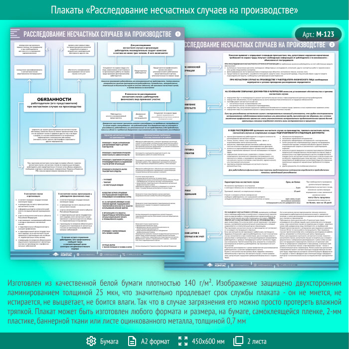 Плакаты «Расследование несчастных случаев на производстве» (М-123, ламинированная бумага, А2, 2 листа) в Бердске купить