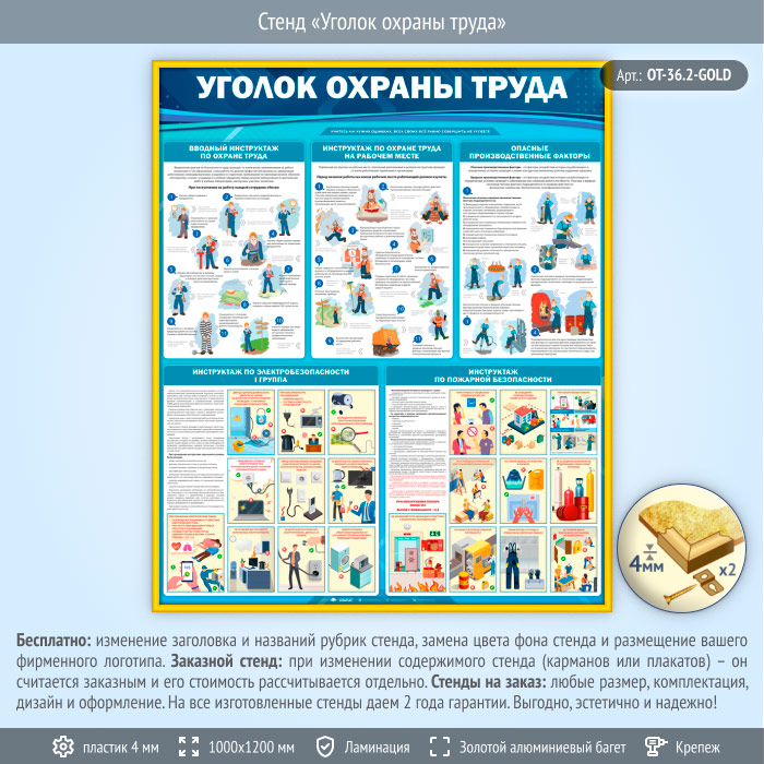 Стенд «Уголок охраны труда» (OT-36.2-GOLD) в Бердске купить