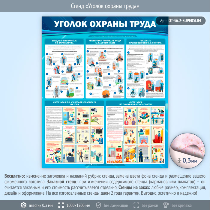 Стенд «Уголок охраны труда» (OT-36.2-SUPERSLIM) в Бердске купить