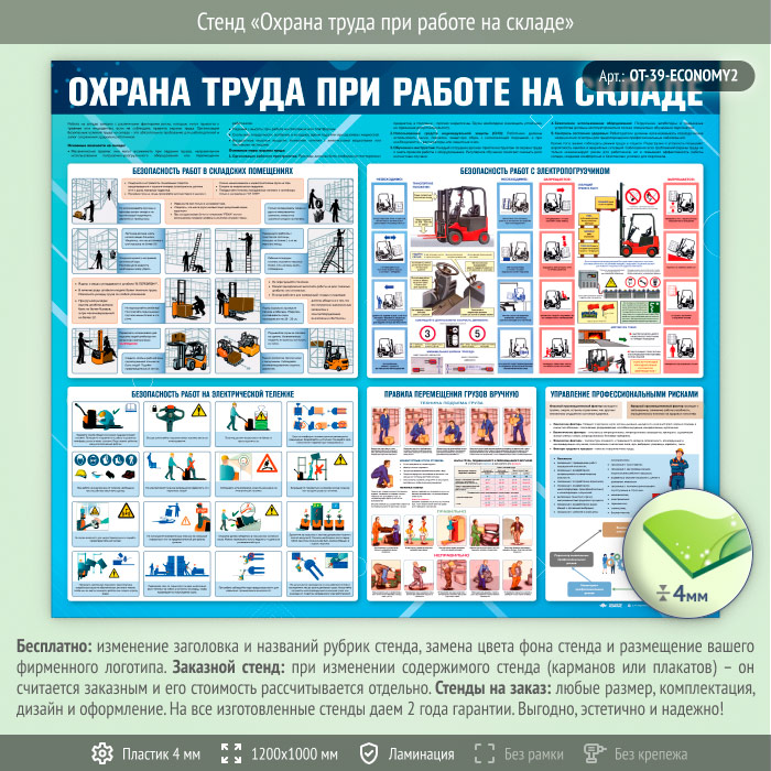 Стенд «Охрана труда при работе на складе» (OT-39-ECONOMY2) в Бердске купить