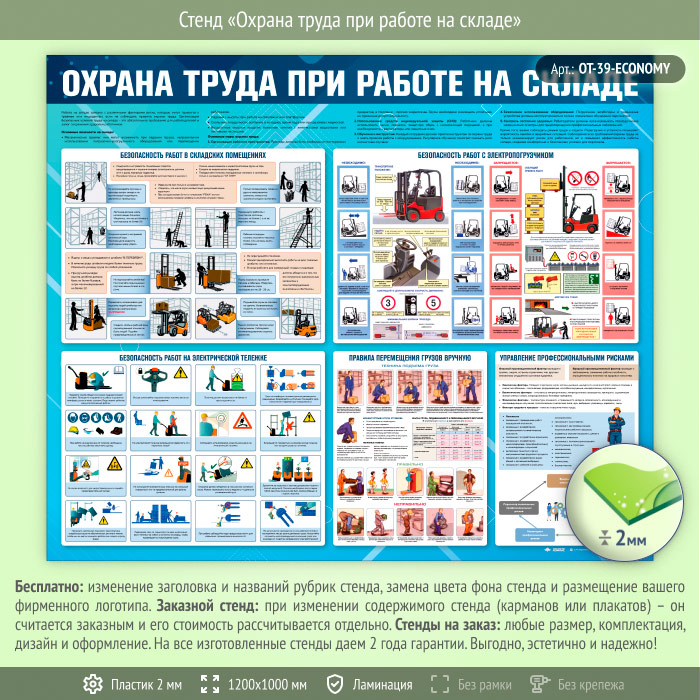 Стенд «Охрана труда при работе на складе» (OT-39-ECONOMY) в Бердске купить