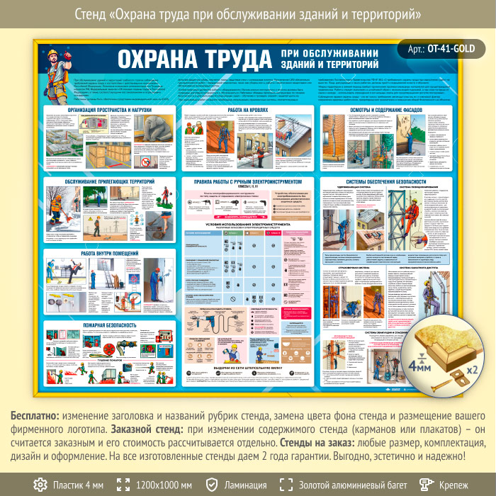 Стенд «Охрана труда при обслуживании зданий и территорий» (OT-41-GOLD) в Бердске купить
