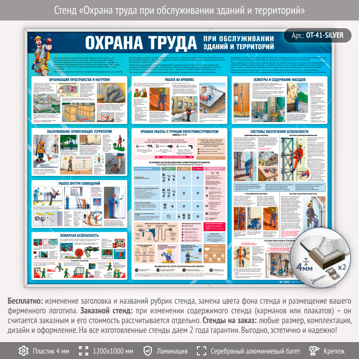 Стенд «Охрана труда при обслуживании зданий и территорий» (OT-41-SILVER) в Бердске купить