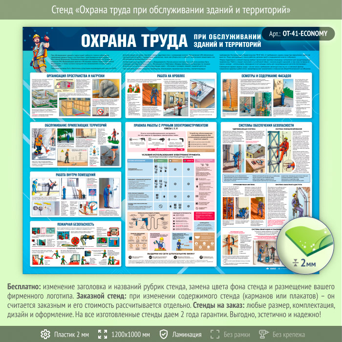 Стенд «Охрана труда при обслуживании зданий и территорий» (OT-41-ECONOMY) в Бердске купить