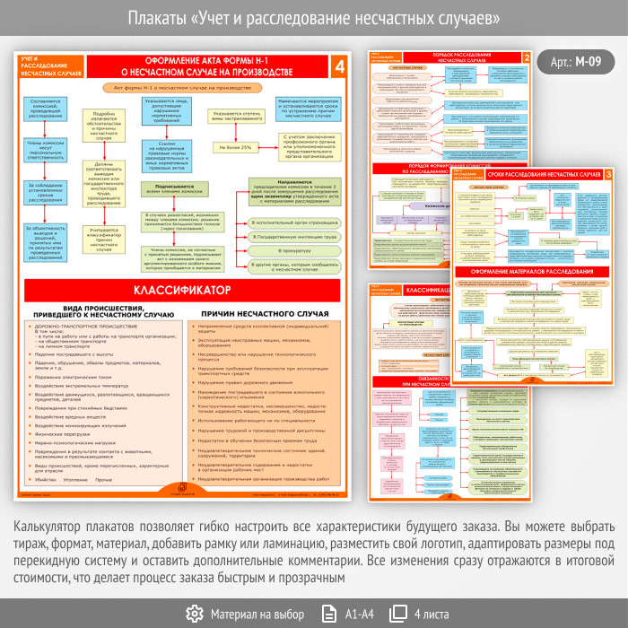 Плакаты «Учет и расследование несчастных случаев» (М-09, 4 листа) в Бердске купить