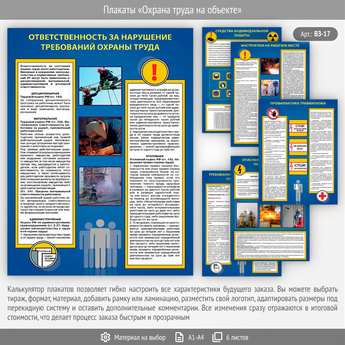 Плакаты «Охрана труда на объекте» (ВЗ-17, 6 листов) в Бердске купить