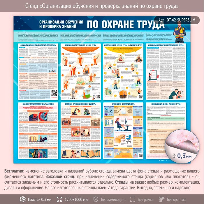 Стенд «Организация обучения и проверка знаний по охране труда» (OT-42-SUPERSLIM) в Бердске купить