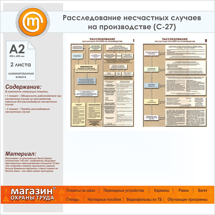 Плакаты «Расследование несчастных случаев на производстве» (С-27, ламинированная бумага, А2, 2 листа) в Бердске купить
