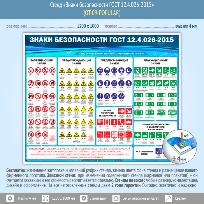Стенд «Знаки безопасности ГОСТ 12.4.026-2015» (OT-09-POPULAR) в Бердске купить