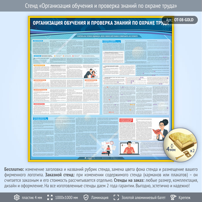 Стенд «Организация обучения и проверка знаний по охране труда» (OT-08-GOLD) в Бердске купить