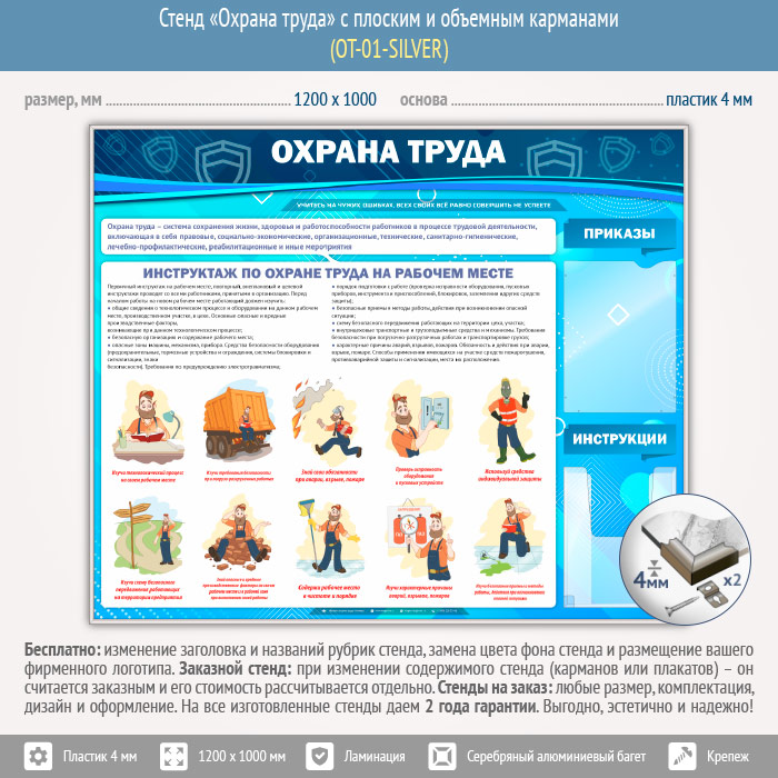 Стенд «Охрана труда» с плоским и объемным карманами (OT-01-SILVER) в Бердске купить