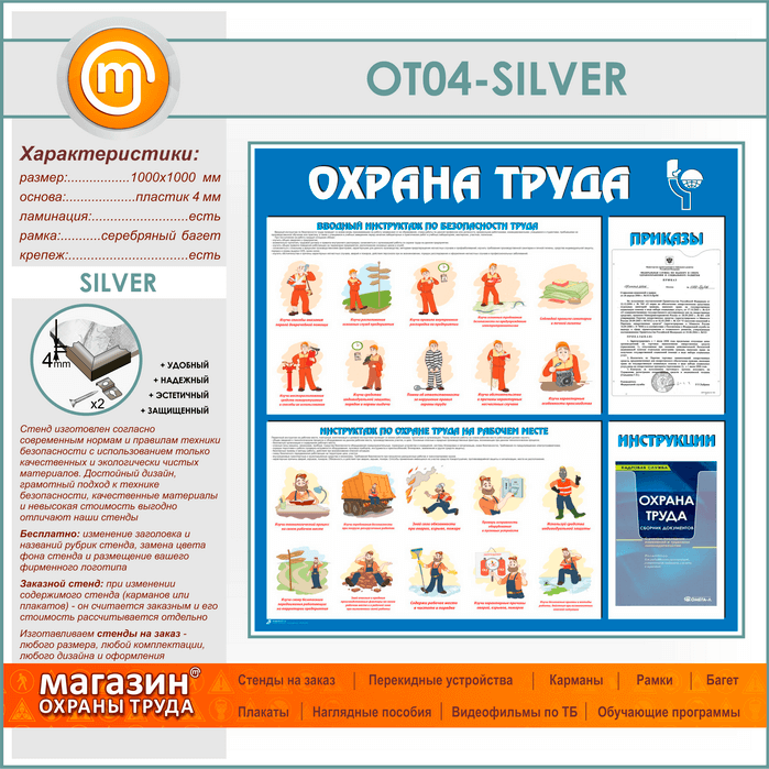 Стенд «Охрана труда» с плоским и объемным карманами (OT-04-SILVER) в Бердске купить