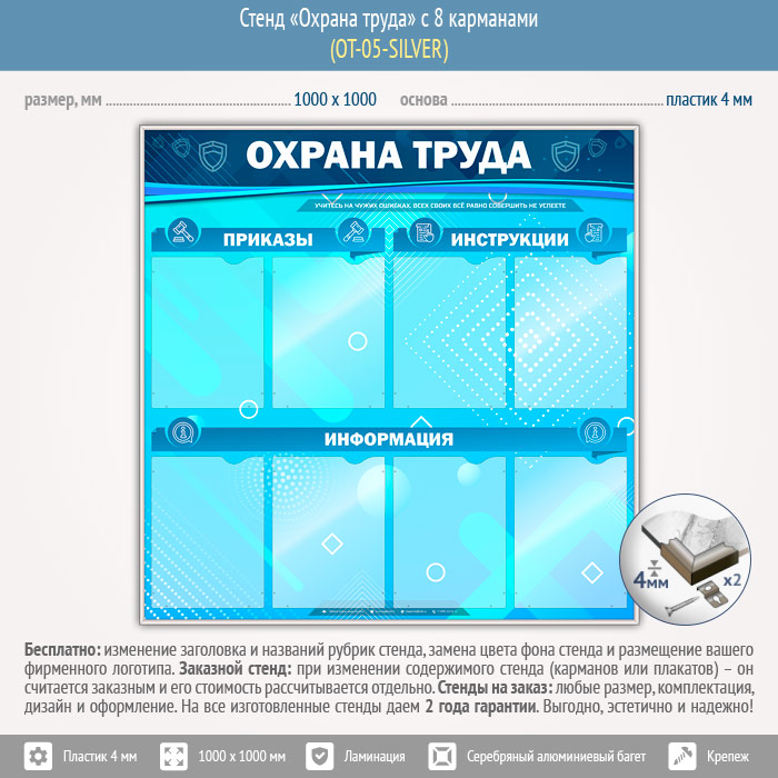 Стенд «Охрана труда» с 8 карманами (OT-05-SILVER) в Бердске купить