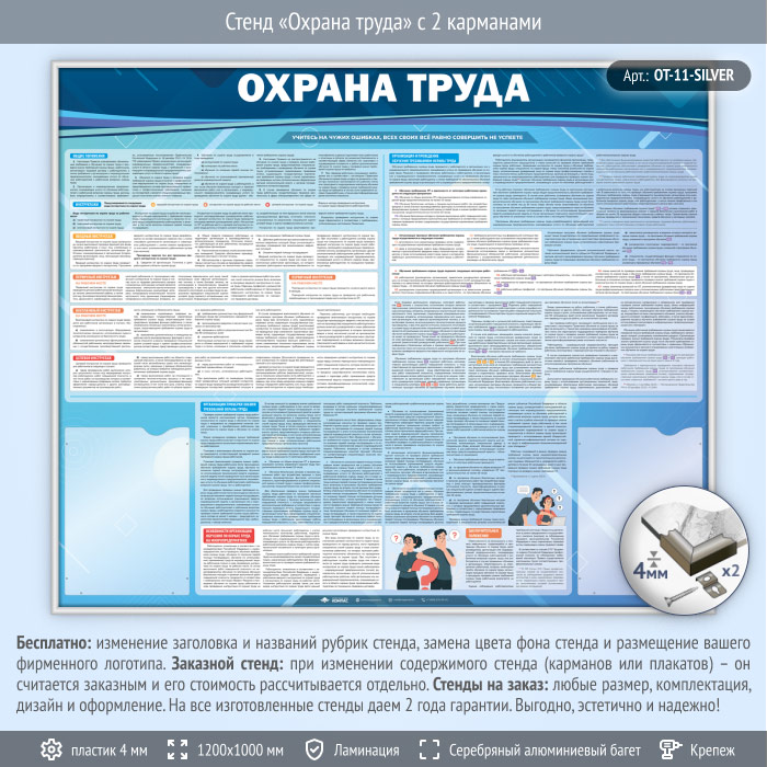 Стенд «Охрана труда» с 2 карманами (OT-11-SILVER) в Бердске купить