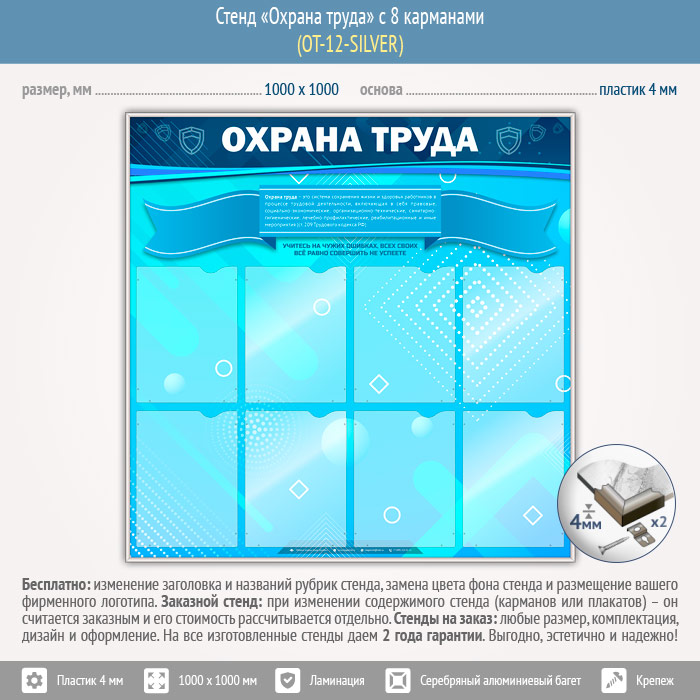 Стенд «Охрана труда» с 8 карманами (OT-12-SILVER) в Бердске купить