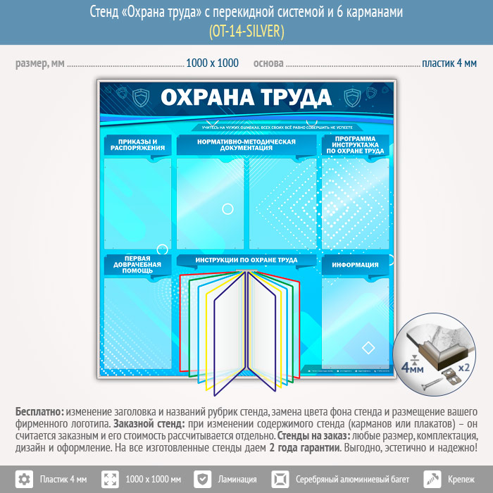 Стенд «Охрана труда» с перекидной системой и 6 карманами (OT-14-SILVER) в Бердске купить