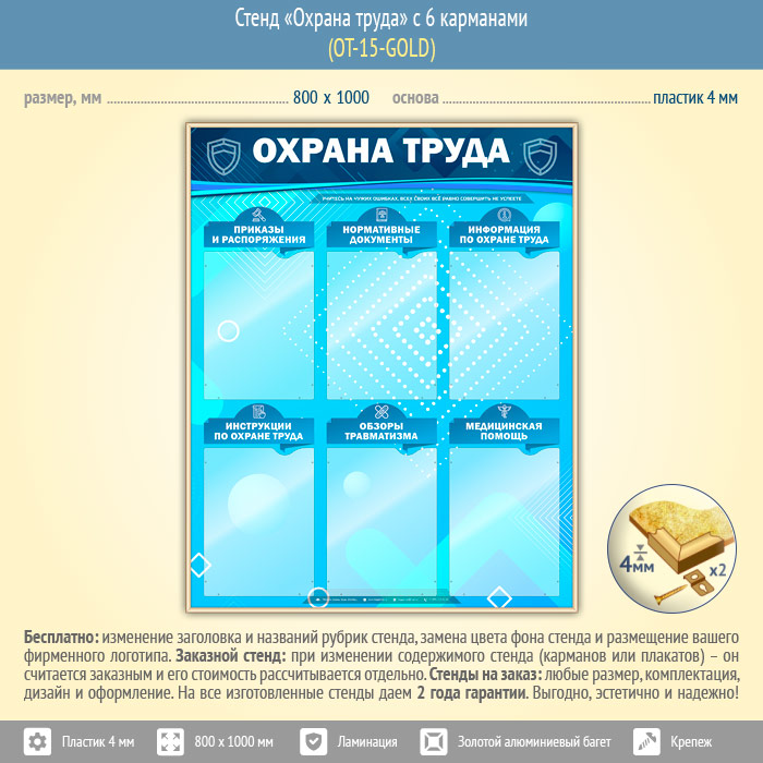Стенд «Охрана труда» с 6 карманами (OT-15-GOLD) в Бердске купить