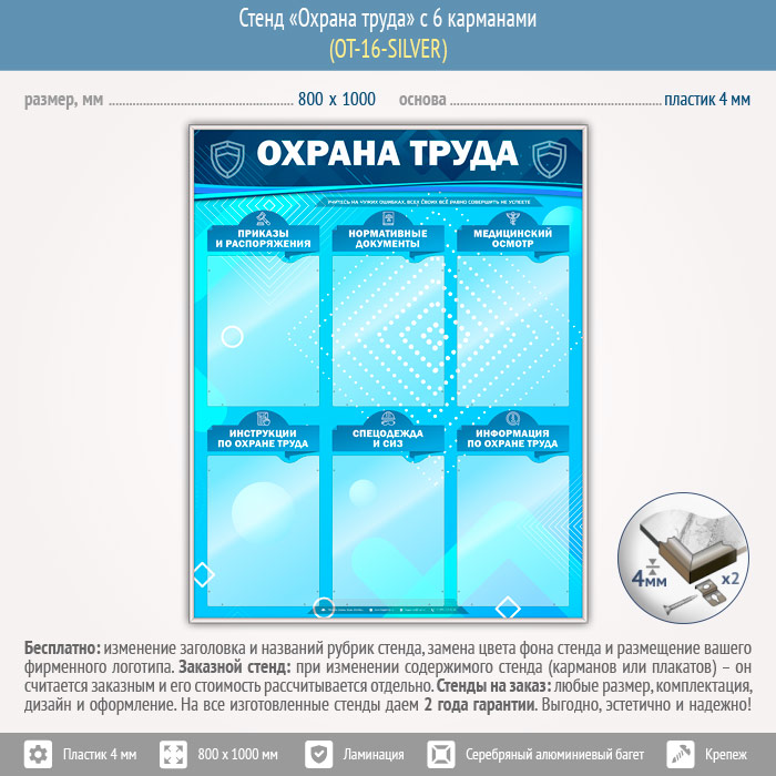 Стенд «Охрана труда» с 6 карманами (OT-16-SILVER) в Бердске купить