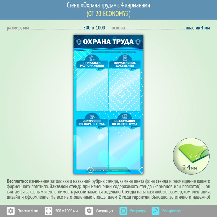 Стенд «Охрана труда» с 4 карманами (OT-20-ECONOMY2) в Бердске купить