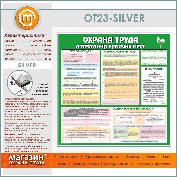 Стенд «Охрана труда. Аттестация рабочих мест» с карманом (OT-23-SILVER) в Бердске купить