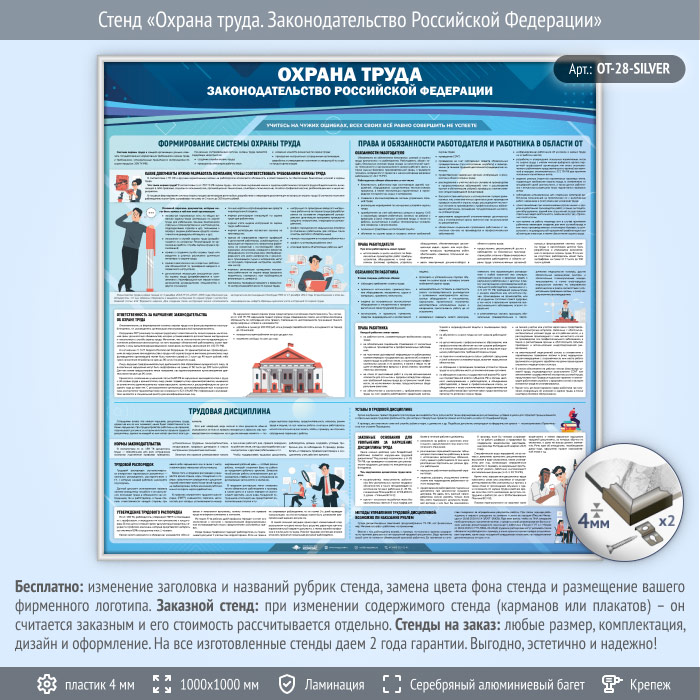 Стенд «Охрана труда. Законодательство Российской Федерации» (OT-28-SILVER) в Бердске купить