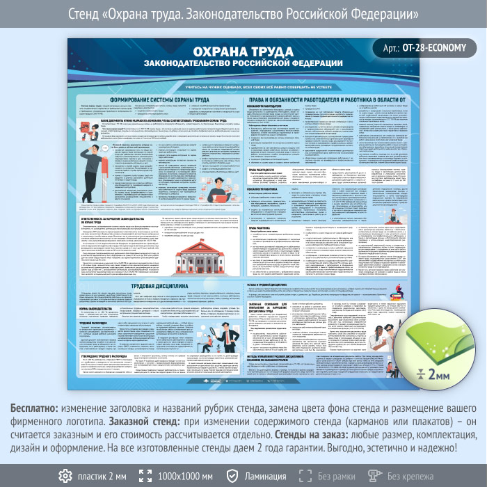Стенд «Охрана труда. Законодательство Российской Федерации» (OT-28-ECONOMY) в Бердске купить