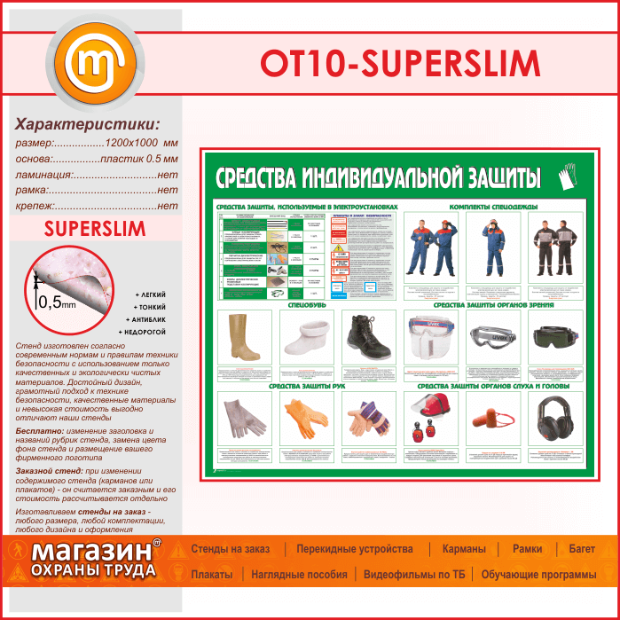 Стенд «Средства индивидуальной защиты» (OT-10-SUPERSLIM) в Бердске купить