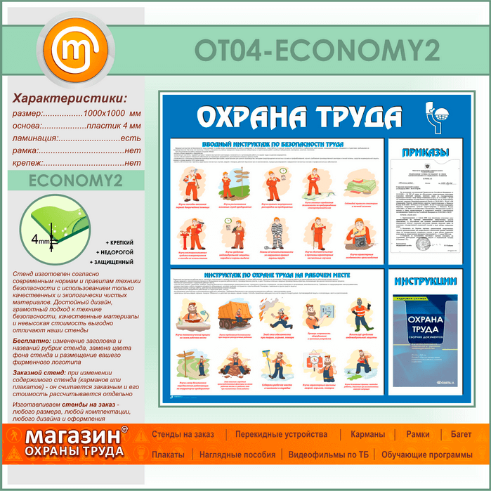 Стенд «Охрана труда» с плоским и объемным карманами (OT-04-ECONOMY2) в Бердске купить