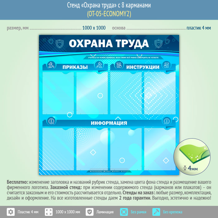 Стенд «Охрана труда» с 8 карманами (OT-05-ECONOMY2) в Бердске купить