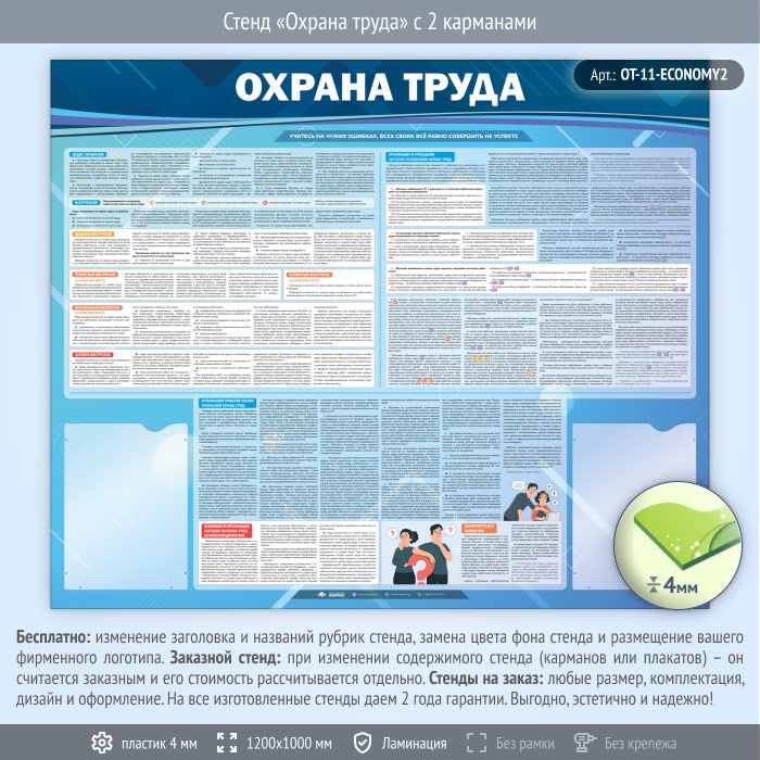 Стенд «Охрана труда» с 2 карманами (OT-11-ECONOMY2) в Бердске купить