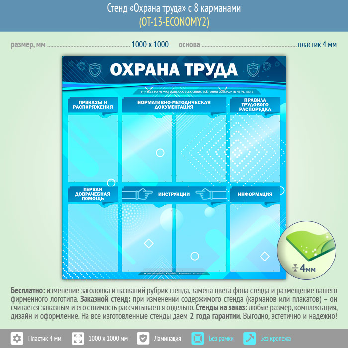 Стенд «Охрана труда» с 8 карманами (OT-13-ECONOMY2) в Бердске купить