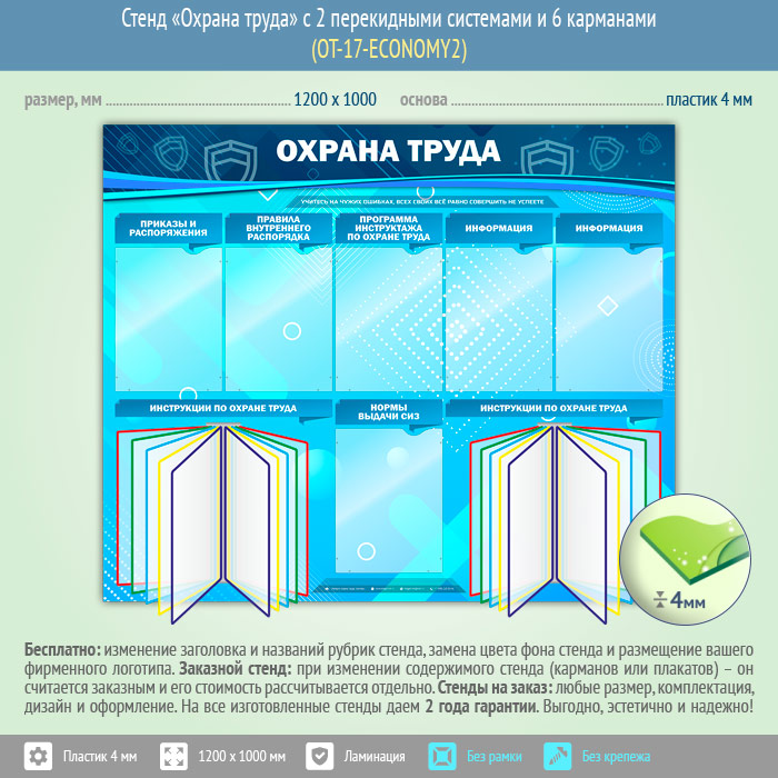 Стенд «Охрана труда» с 2 перекидными системами и 6 карманами (OT-17-ECONOMY2) в Бердске купить