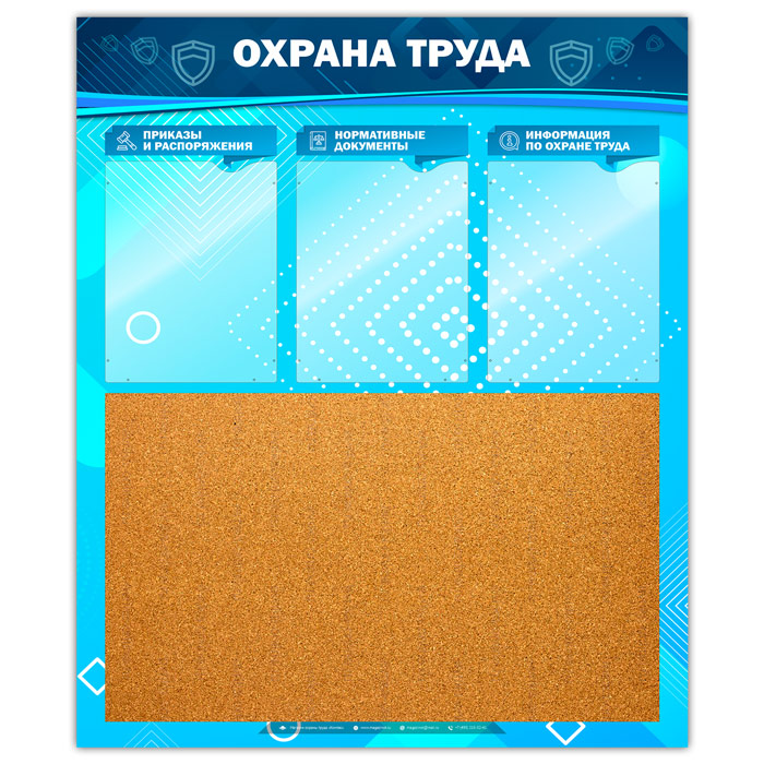 Стенд «Охрана труда» с пробковым полотном и 3 карманами (OT-22-GOLD) в Бердске купить