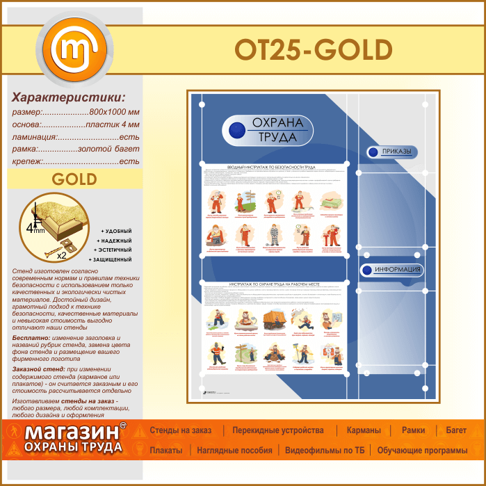 Стенд «Охрана труда» с 2 плоскими карманами (OT-25-GOLD) в Бердске купить