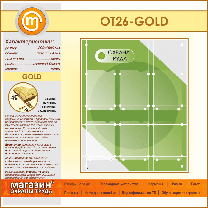 Стенд «Охрана труда» с 6 плоскими карманами (OT-26-GOLD) в Бердске купить
