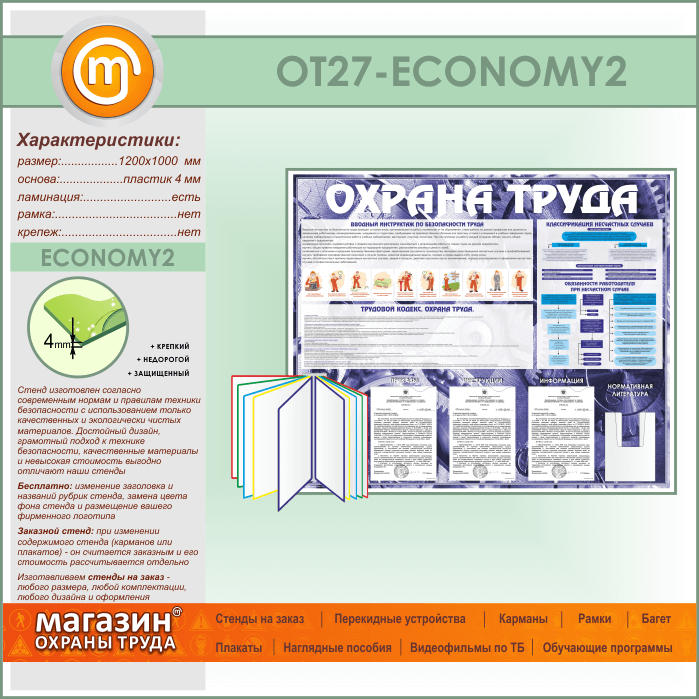 Стенд «Охрана труда» с перекидной системой, 3 плоскими и 1 объемным карманом (OT-27-ECONOMY2) в Бердске купить