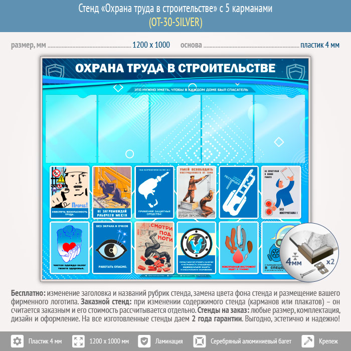 Стенд «Охрана труда в строительстве» с 5 карманами (OT-30-SILVER) в Бердске купить