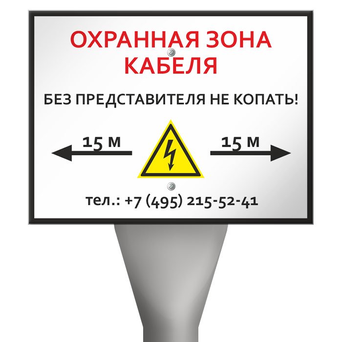 Столбик кабельный СКТ-1,6 с металлическим знаком OZK-02 «Охранная зона кабеля. Без представителей не копать» в Бердске купить