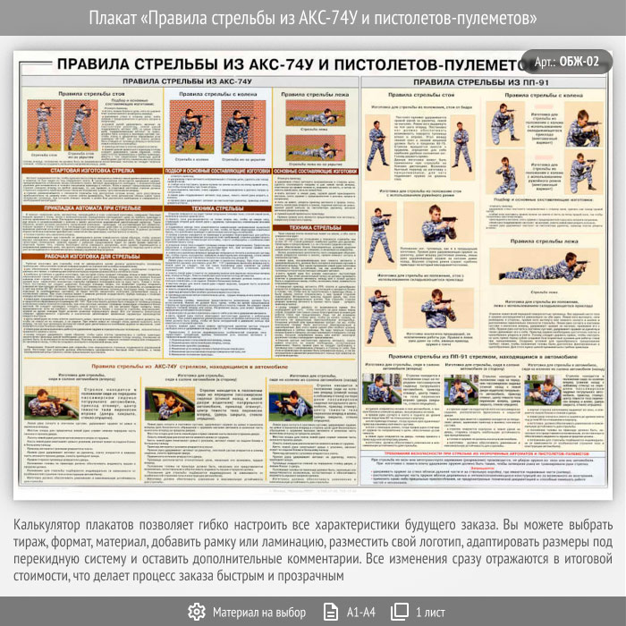 Плакат «Правила стрельбы из АКС-74У и пистолетов-пулеметов» (ОБЖ-02, 1 лист) в Бердске купить