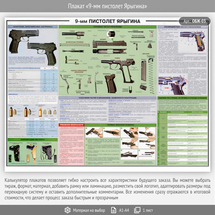 Плакат «9-мм пистолет Ярыгина» (ОБЖ-03, 1 лист) в Бердске купить