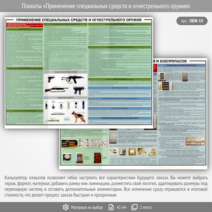 Плакаты «Применение специальных средств и огнестрельного оружия» (ОБЖ-10, 2 листа) в Бердске купить