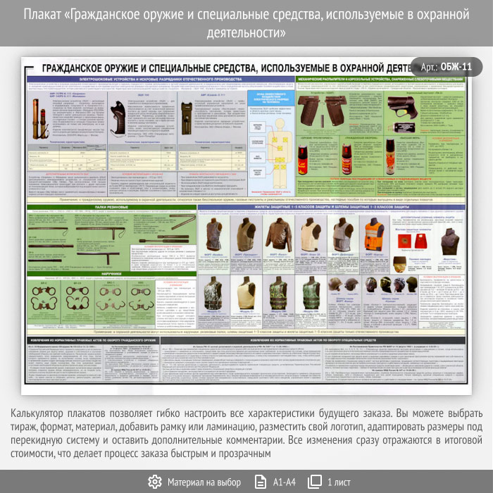 Плакат «Гражданское оружие и специальные средства, используемые в охранной деятельности» (ОБЖ-11, 1 лист) в Бердске купить